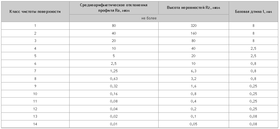 Содействие в подборе подходящего набора оказывают таблицы образцов. Они содержат сведения о классе чистоты поверхности, высоте неровностей, длине изделий и прочих показателях.