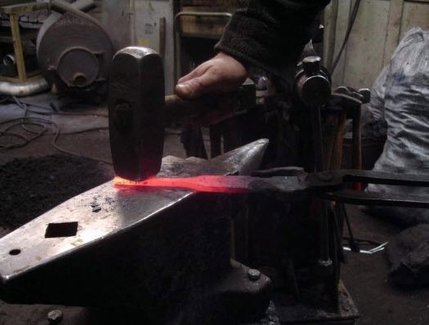 Обратите внимание! Если заготовка приобретет вишневый цвет, поместите ее обратно в печь для дополнительного нагрева. Это нужно для того, чтобы металл не раскололся.