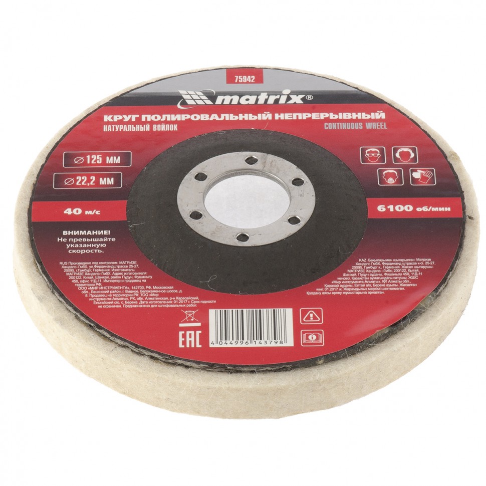 Как купить Круг полировальный непрерывный из натурального войлока 125 х 22,2 мм Matrix?