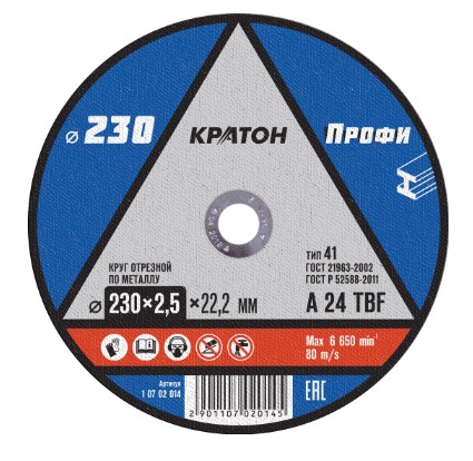 Как купить Круг отрезной по металлу Кратон "Профи" A 24 TBF 230х2,5х22,2 мм?