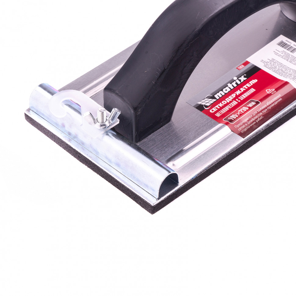 Сеткодержатель ТМ Matrix предназначен для шлифования и зачистки различных поверхностей, с помощью абразивных материалов (шлифлист, сетка) надежно фиксируя их с помощью металлических зажимов.