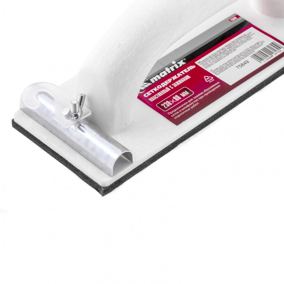 Сеткодержатель ТМ Matrix предназначен для шлифования и зачистки различных поверхностей, с помощью абразивных материалов (шлифлист, сетка) надежно фиксируя их с помощью металлических зажимов.