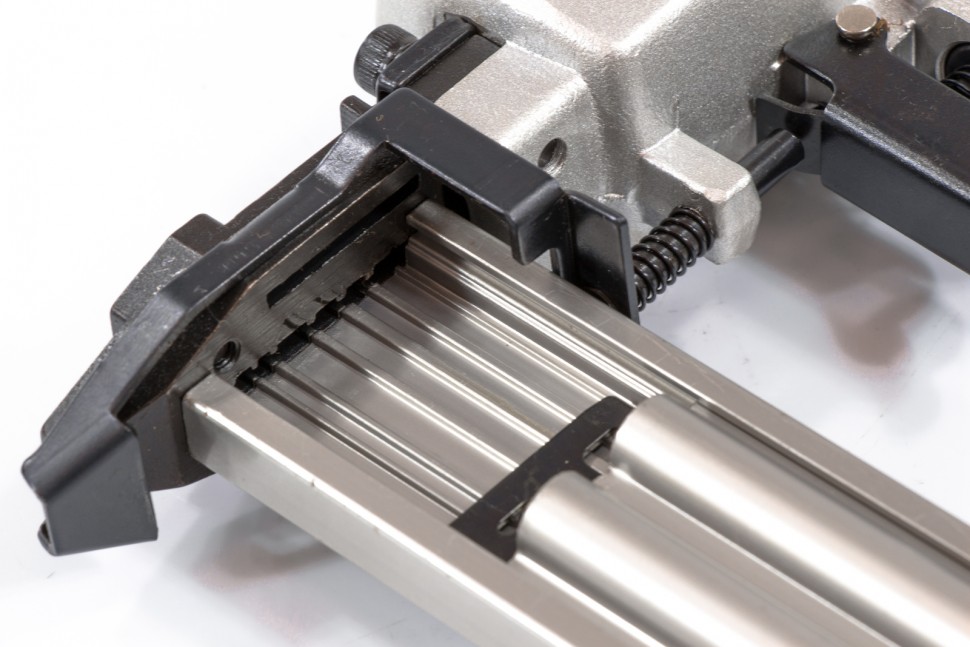 Пневматический гвоздезабивочный пистолет с емкостью магазина на 100 паркетных гвоздей размера 18 предназначен для быстрого и надежного крепления паркетной доски, фанеры, ДВП, гипсокартона, кожи, ткани и бумаги к деревянным поверхностям.