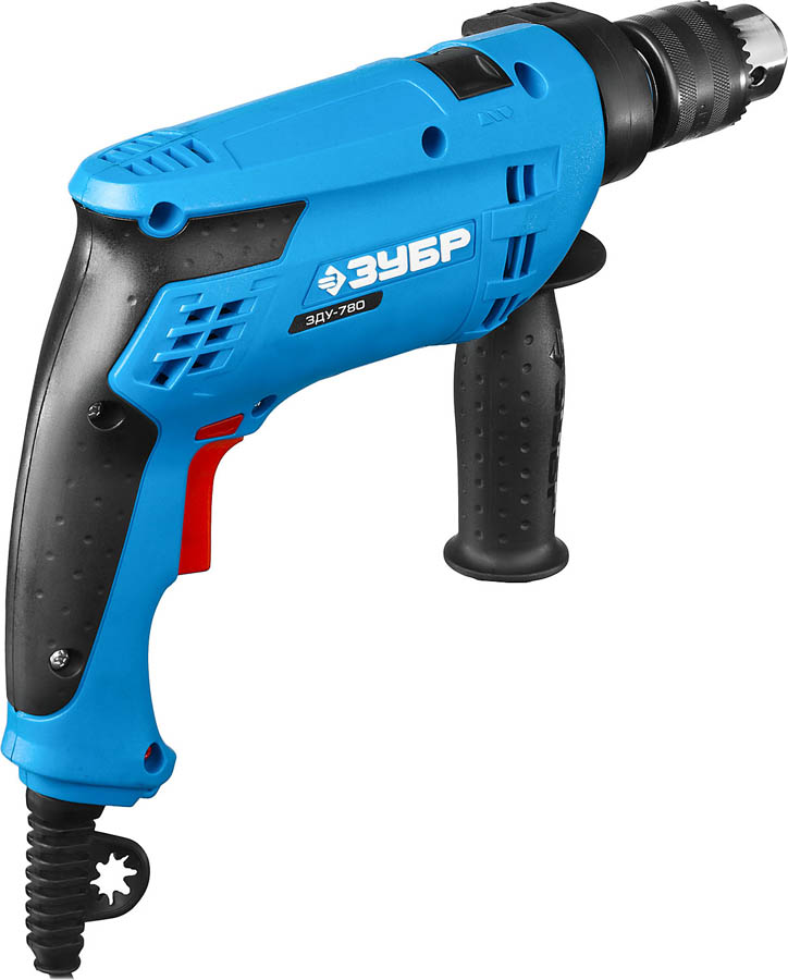 Дрель ударная электрическая ЗУБР ЗДУ-780 ЭРМ2, предназначена для сверления отверстий в различных материалах (дерево, сталь и т. д.). Производительная дрель с качественным кулачковым патроном, плавной регулировкой оборотов и надежной конструкцией на подшипниках - лучший подарок мастеру. Функция сверления с ударом, широкий диапазон регулировки частоты вращения, удобная дополнительная рукоятка - все, что нужно для качественной работы. Надежный инструмент для эффективной, качественной работы. Производительная дрель для различных работ (сверление, заворачивание, перемешивание). Функция сверления с ударом позволяет выполнять отверстия в кирпиче и легком бетоне. Электронная регулировка оборотов в широком диапазоне расширяет возможности использования изделия. Изменение частоты вращения степенью нажатия на выключатель обеспечивает как плавное начало сверления во избежание увода сверла, так и быстрое сверление. Надежная конструкция на шариковых подшипниках для минимального биения шпинделя.
