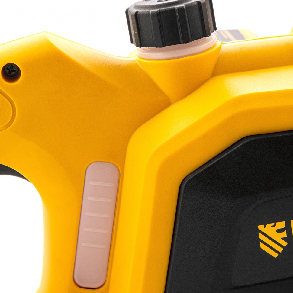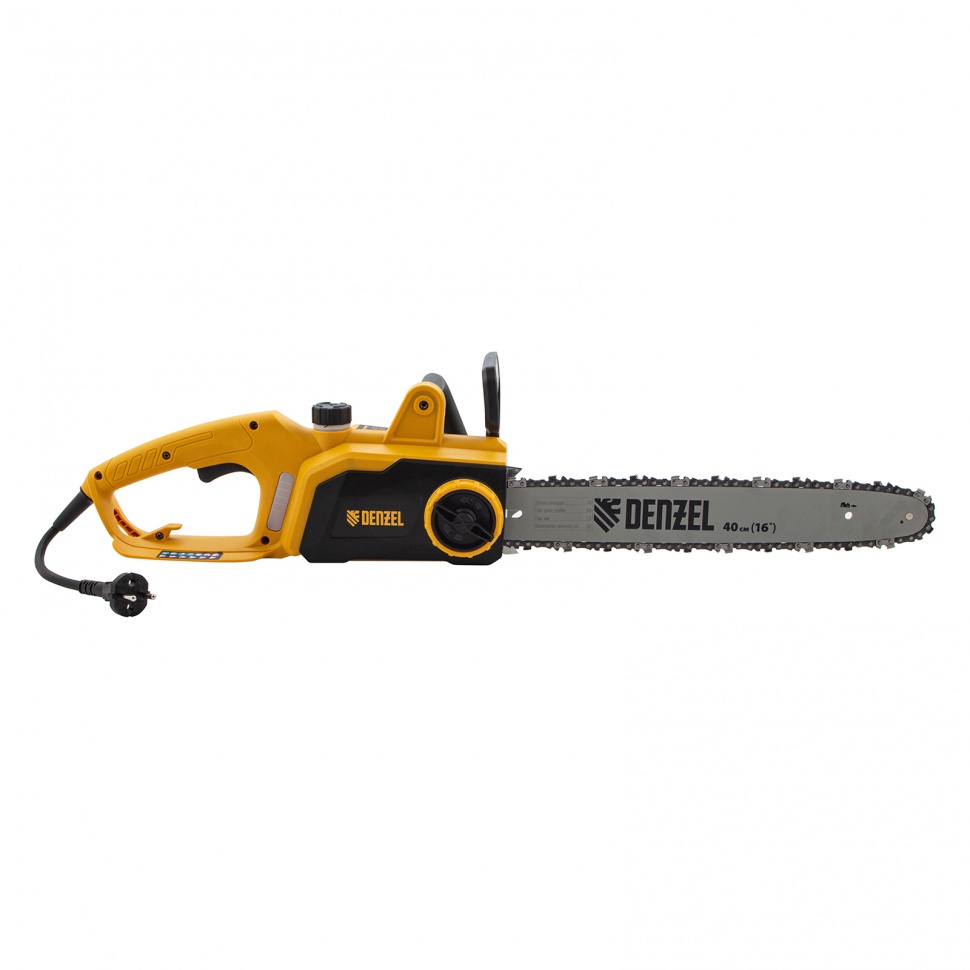 Пила цепная электрическая Denzel EDS-2000P 95616 мощностью 2 кВт, с поперечным расположением двигателя, комплектуется шиной длиной 40 см с 57 звеньями (шаг 3/8?, паз 1,3 мм). Предназначена для заготовки дров, распиливания готовых материалов, подравнивания ветвей в саду, ремонта и частного строительства.Инструмент работает от электросети и не производит вредных выбросов в окружающую среду, поэтому может использоваться в закрытых помещениях, например, в частных мастерских. Процесс запуска максимально упрощен — не нужно готовить топливную смесь, достаточно подключить пилу к сети, и она будет готова к работе. ПреимуществаУдобное использование — поперечное расположение двигателя, небольшие габариты 84 х 26,5 х 18,5 см и малый вес 4,97 кг облегчают работу и позволяют пилить в вертикальной плоскости.Безопасность — двойная защита от случайного пуска и моментальное отключение двигателя при отскоке пилы снижают риск травмирования.Быстрая подготовка к работе — снять и зафиксировать шину, натянуть или заменить цепь можно без ключа.Эффективный рез — пильная гарнитура произведена с контролем термообработки стали, поэтому долго держит заточку.Автоматическое смазывание цепи — масло подается в необходимом количестве в зависимости от нагрузки, что предотвращает преждевременный износ ходовых частей.Полупрозрачный масляный бак — удобно контролировать уровень масла и вовремя доливать его, ориентируясь на отметку max.Надежное удерживание пилы — стальной зубчатый упор служит точкой опоры, уменьшая нагрузку на пользователя и позволяя получить аккуратный срез.Антивибрационная система — прочное крепление ручек к корпусу, мягкое покрытие передней ручки и специальные амортизаторы в конструкции пилы уменьшают отдачу и позволяют работать с комфортом.Надежность — благодаря медной обмотке двигатель работает без риска перегрузки и перегрева даже при высоких нагрузках.Безопасное хранение и транспортировка — пильная шина поставляется в жестком чехле.Держатель кабеля — удлинитель фиксируется с помощью крючка на задней рукоятке, поэтому риск его попадания под шину исключен.Легкое обслуживание — крышка двигателя легко снимается для осмотра, замены щеток и очистки моторного отсека.Гарантия 3 года — высокое качество электропилы подтверждено производителем.