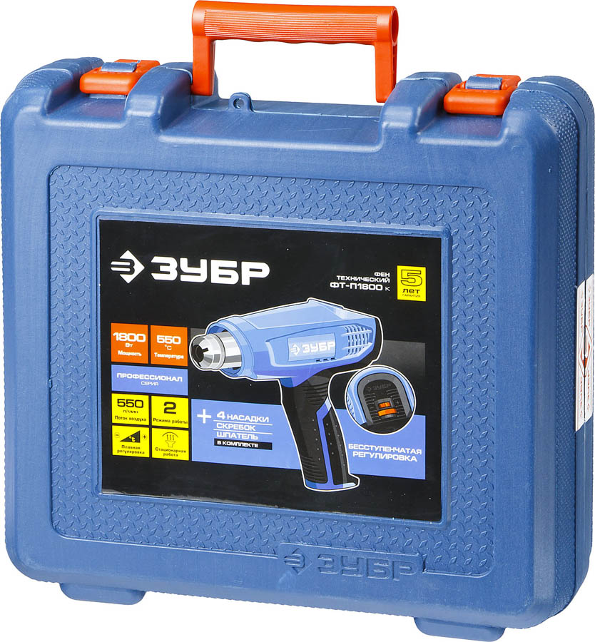 Как купить Фен технический ФТ-П1800 К Профессионал ЗУБР 1800 Вт, 1 режим: 80-400°С; 2 режим: 100-550°С, кейс?