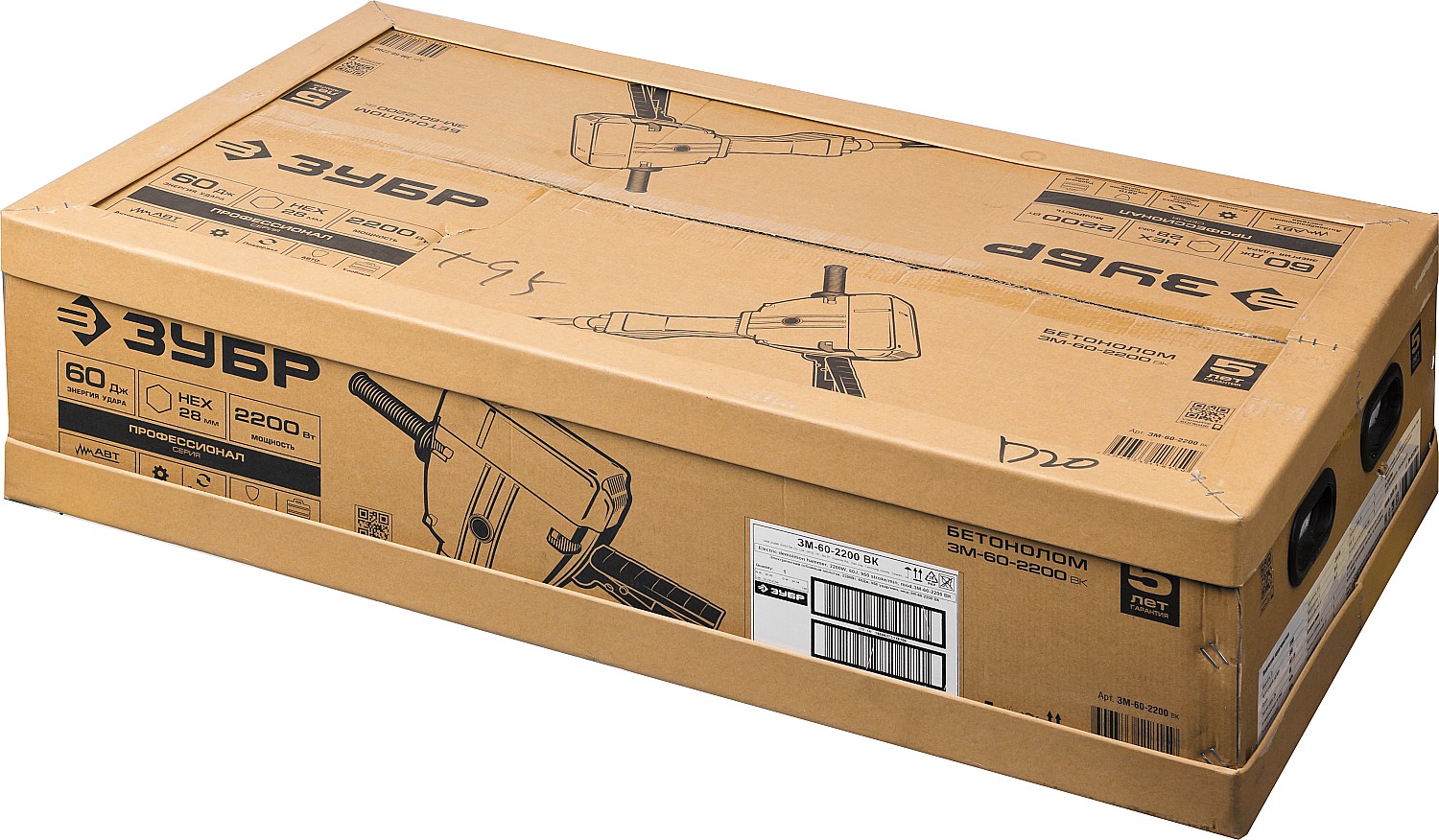 Отбойный молоток электрический, бетонолом HEX 28 ЗУБР ЗМ-60-2200 ВК, для разрушения конструкций из бетона, железобетона, кирпича и камня, долбления уплотненного грунта, асфальтовых, бетонных и плиточных покрытий и других строительных работ. Обладает мощностью, достаточной для разрушения любых конструкций. Низкий центр тяжести изделия, максимально сниженная вибрация и высокопроизводительный механизм облегчают и ускоряют работу. Патрон НЕХ для установки широкого спектра профессионального расходного инструмента и быстрой замены в процессе работы. Антивибрационная система значительно снижает вредное воздействие вибрации на оператора при длительной работе. Блокировка ударного механизма при холостой работе для безопасности и долгого срока службы. Сила удара генерируется механизмом без давления на инструмент. Надежность и долговечность благодаря качественным материалам и контролю процесса производства. Удобный выключатель под естественный хват с блокировкой непроизвольного включения.