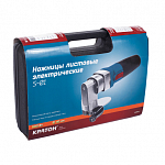 Кратон S-01 - электрические ножницы по металлу мощностью 500 Вт. Предназначены для прямолинейной и фигурной резки листовой стали толщиной до 2,5 мм. Минимальный радиус кривизны траектории – 40 мм. Предусмотрена регулировка зазора между подвижным и опорным ножами в зависимости от толщины разрезаемой листовой стали. Ножи инструмента имеют четыре режущие кромки, благодаря чему при затуплении одной кромки, нож можно повернуть и продолжить работу, используя острую кромку. Металлический корпус редуктора способствует долгому сроку службы электроинструмента.