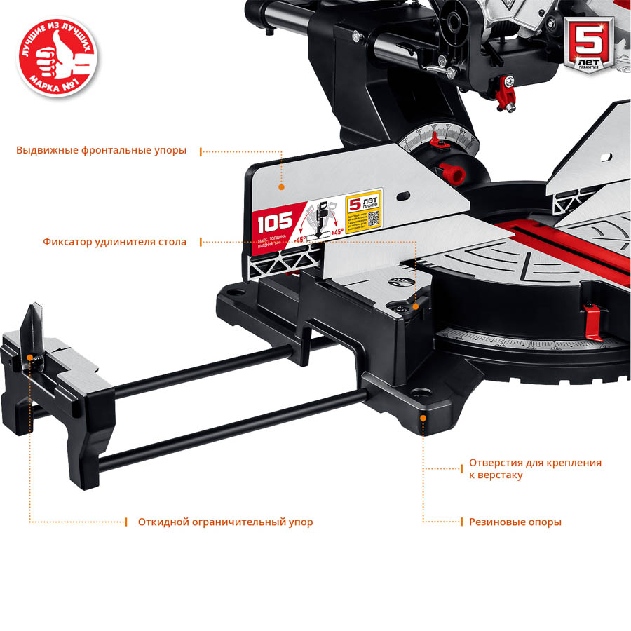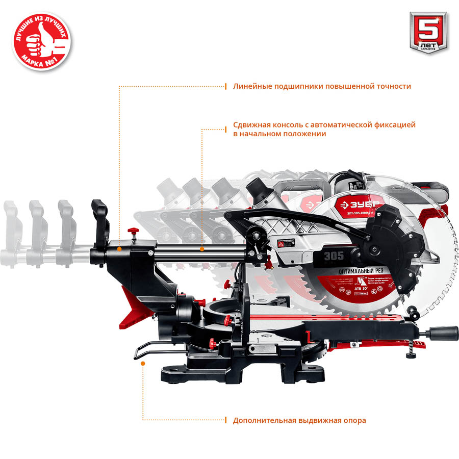 Доставка инструмента Пила торцовочная ЗПТ-305-1800 ПЛ МастерЗУБР 1800 Вт, 305x30 мм, с протяжкой, лазер, удлинители стола