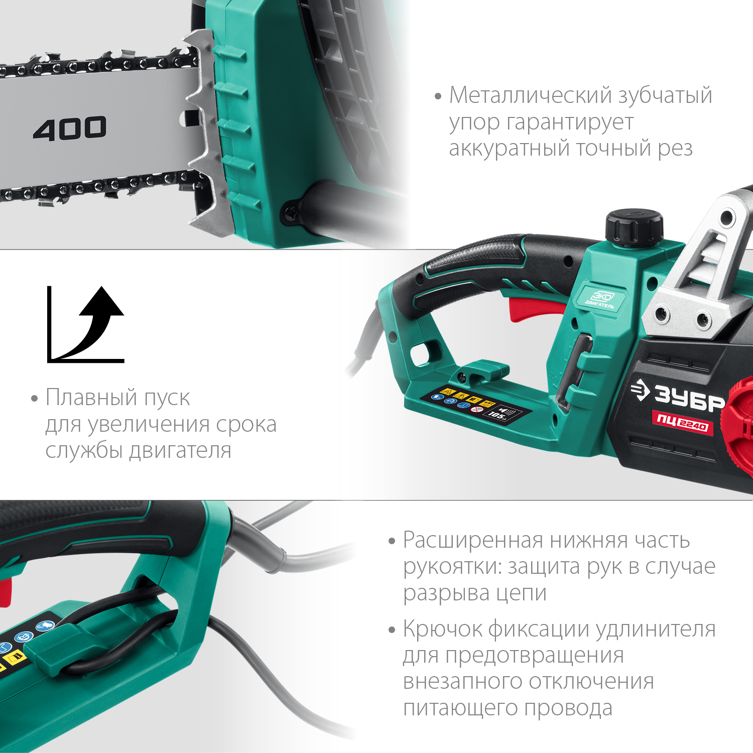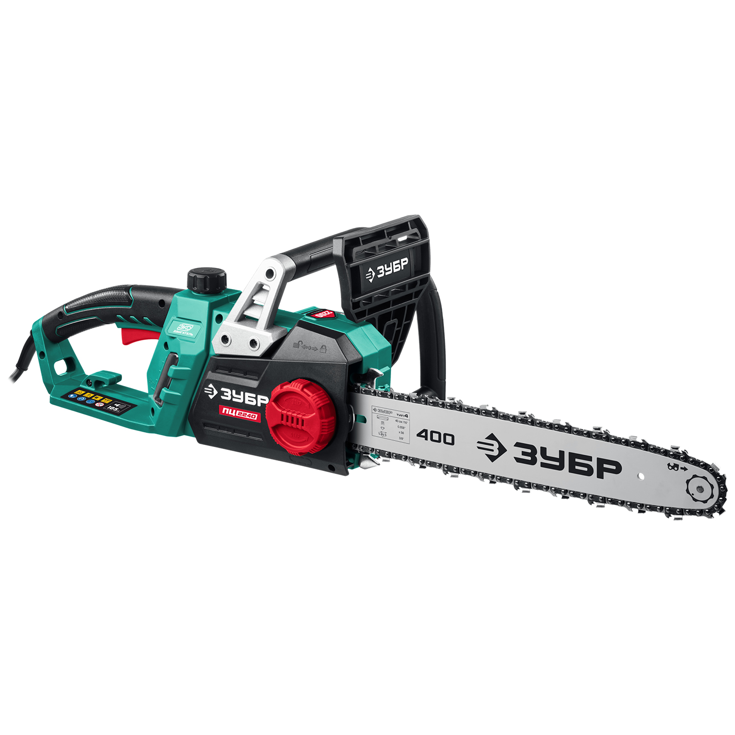 Пила цепная ЗУБР ПЦ-2240, применяется для валки деревьев, а так же пиления веток, обрезки сучьев, пиления деревянных балок, досок и т.п. Легкая, эргономичная и удобная пила с простой конструкцией, гарантирующей высокую надежность. Поперечное расположение двигателя упрощает конструкцию и увеличивает надежность передаточного механизма. Система быстрого натяжения полотна способствует ускорению работы и повышению производительности. Мгновенная остановка цепи, приводимая в действие при откидывании защитного щитка, уловитель цепи и клавиша блокировки включения для дополнительной безопасности. Для работы с инструментом дополнительно требуется приобрести масло (рекомендуем ЗУБР ЗМПМ) и удлинитель-шнур (сечение провода не менее 1 мм?).