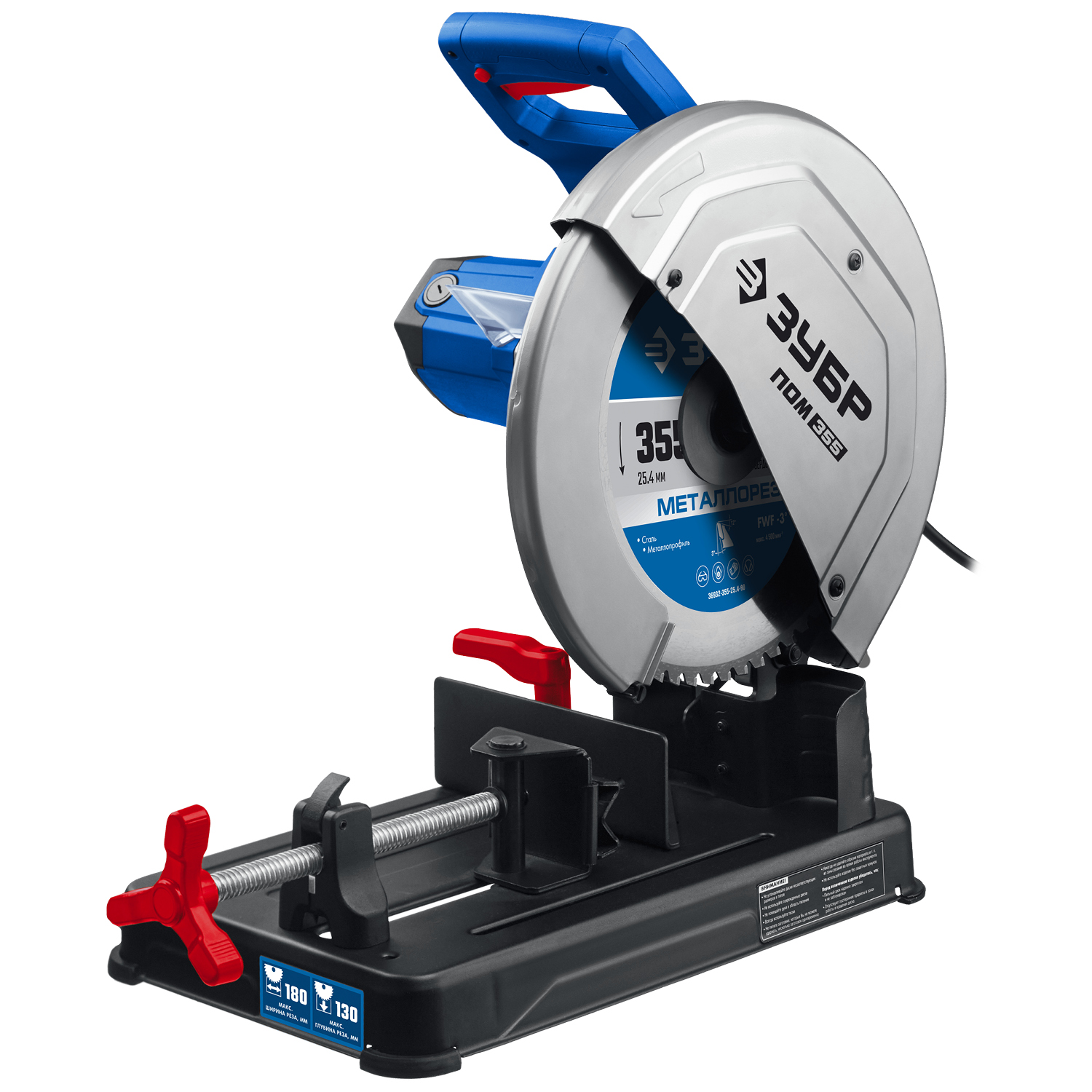 Отрезная пила ЗУБР ПОМ-355, предназначена для прямой и косой отрезки заготовок из металла, при установке соответствующего диска. Пила имеет мощный и высокоресурсный двигатель, прочное штампованное основание и резиновые опоры для снижения вибраций. При работе обеспечивается высокая производительность, качество и точность реза. Конструкцией пилы предусмотрена простая замена угольных щёток.