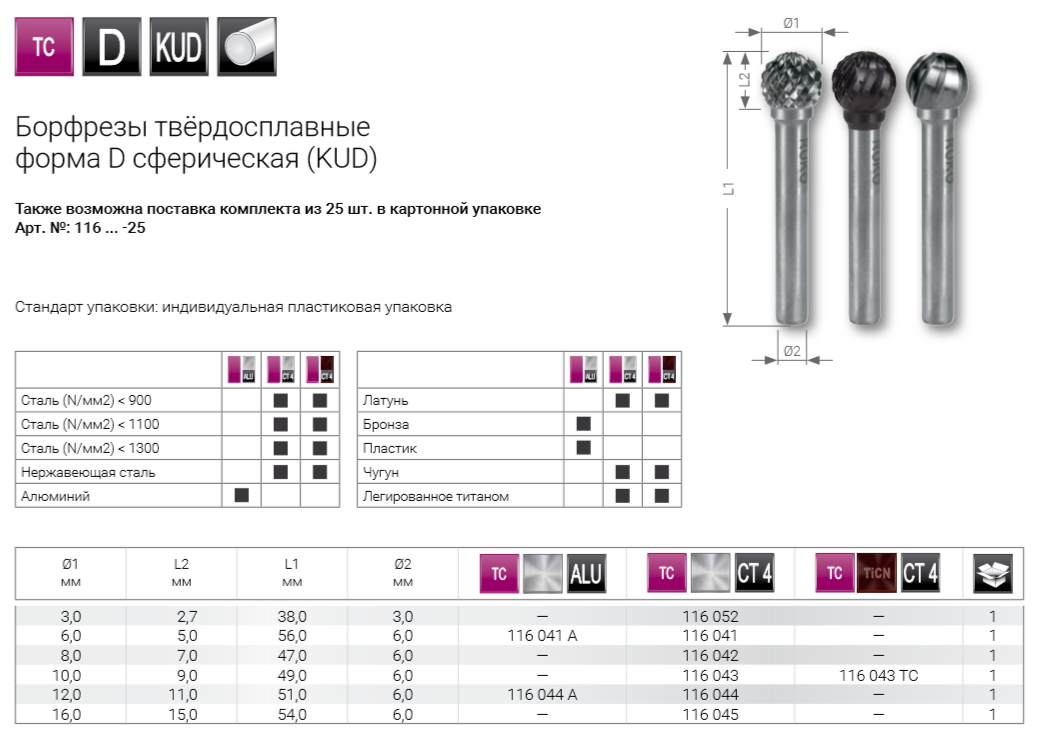 Как купить Борфреза сферическая тип D KUD 16,0х15 RUKO арт.116045?