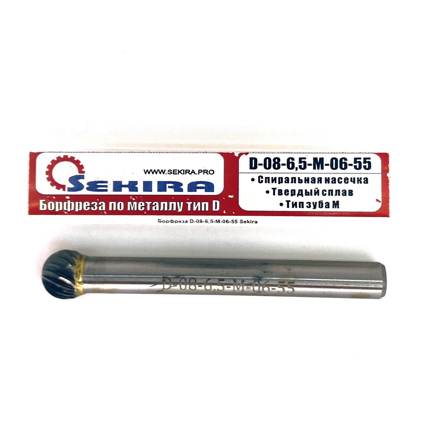 Борфреза сферическая тип D 8х6,5х6х55 спиральная насечка арт. D08 06.5М06 Sekira, арт: 00-00003535