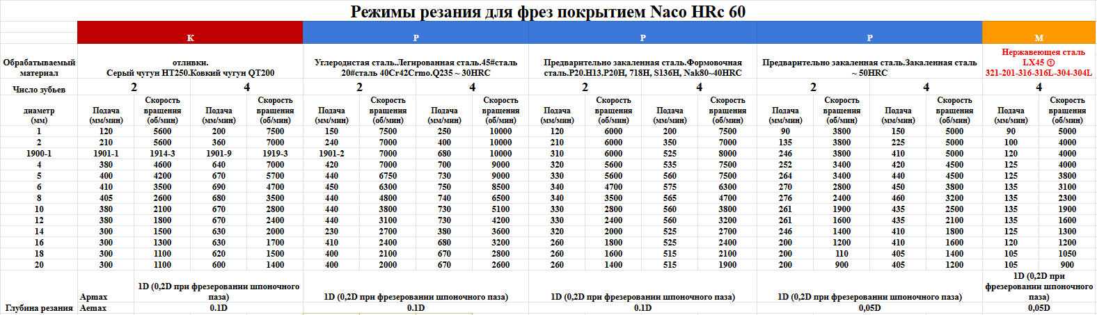Фреза из материала LF10 с покрытием nACo подходит для фрезерования отверстий D = 1.5 мм, на глубину 5 мм в материалах по ISO: PMKSH.