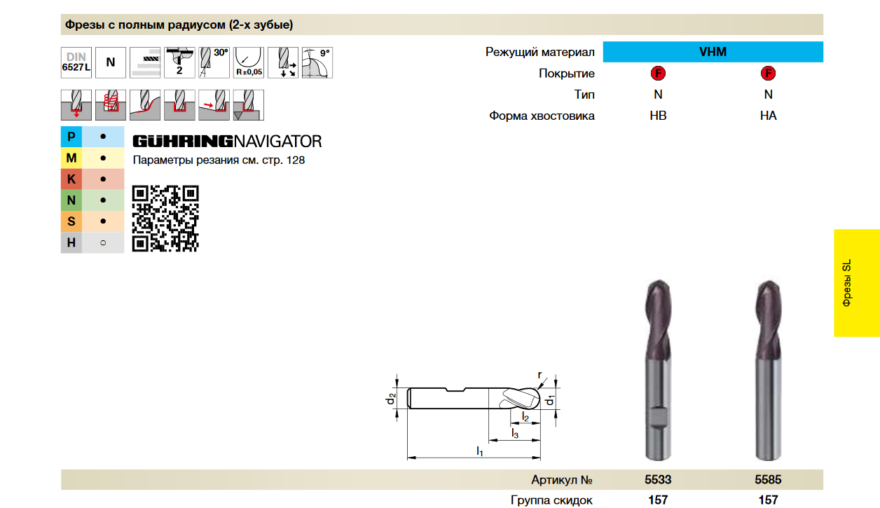 | Код | Размер | l, мм | L, мм | Покрытие | Радиус R, мм | Тип хвостовика | Цена | Количество | |