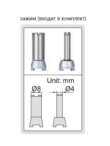 • Поставляется с двумя зажимами диаметром Ø4 мм и Ø8 мм.