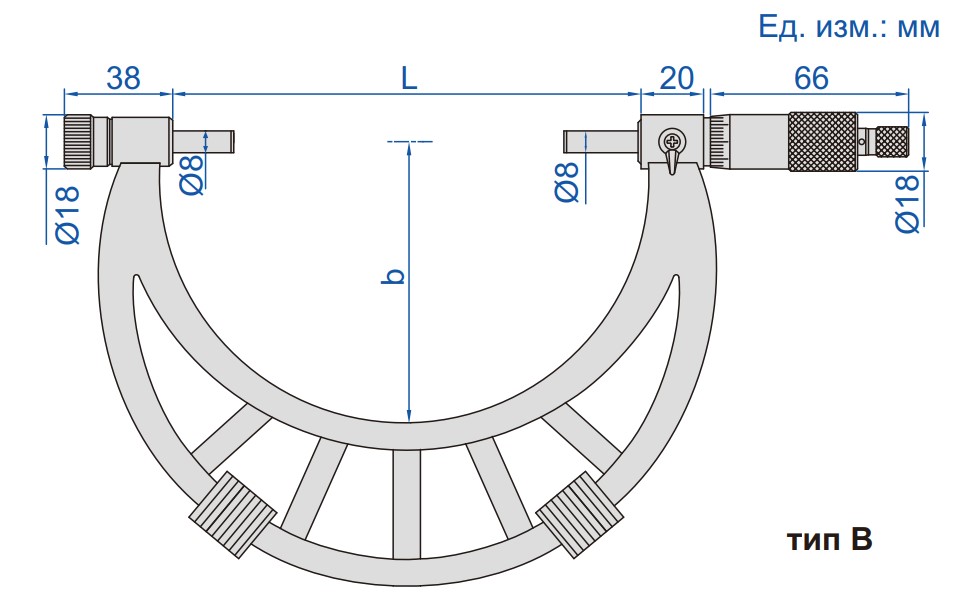 Микрометр гладкий для измерений наружных линейных размеров, с отсчетом по стеблю и барабану, имеют конструкцию со сменной пяткой.