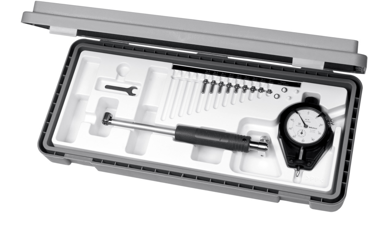 <h3>Исполнение:</h3> <div>Самоцентрирующийся нутромер с трёхточечным базированием. Держатель прибора и индикатор часового типа с матовым хром. покрытием. Индикатор защищён от толчков пластиковым корпусом. Держатель прибора термоизолирован с помощью накладки. Измерительный прибор регулируется под ? отверстия посредством сменных измерительных стержней и шайб.<br>Измерительные стержни с твердосплавным сферическим наконечником.</div> <h3>Применение:</h3> <div>Компарирующий измерительный прибор для контроля отверстий на точность диаметра, цилиндричность и круглость.</div> <h3>Объем поставки:</h3> <div>Включая индикатор часового типа № 432050 разм. 10/58 с ценой деления 0,01 мм.</div>