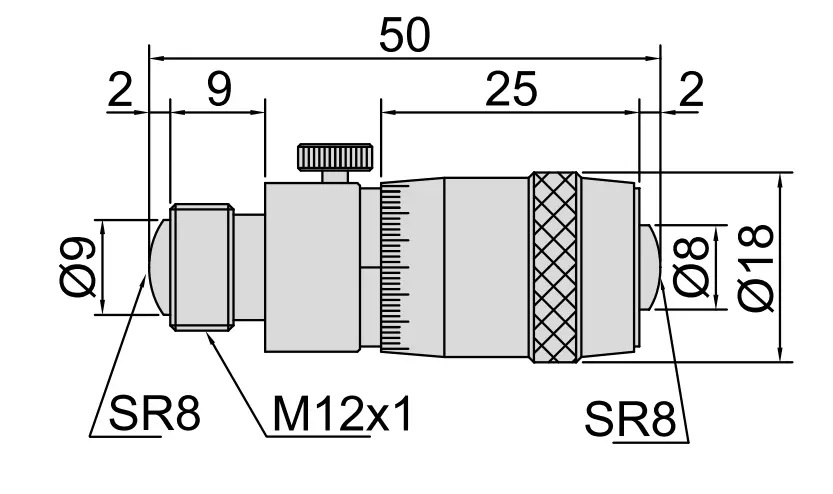 Перемещение измерительной головки = 13 мм.
