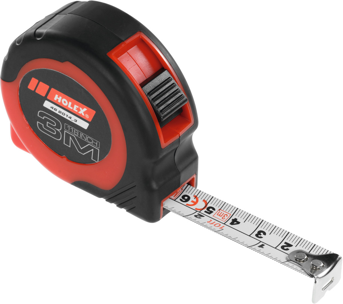 Пластиковый корпус со съемной клипсой для ношения на ремне. Автоматическое, ровное сматывание рулетки и ее фиксация. Подвижный крючок на конце. Измерительное полотно желтое, шкала черная/красная.