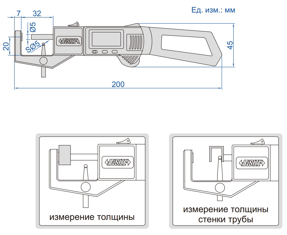 Доставка инструмента Толщиномер цифровой 0-25 мм, 0.01 мм, INSIZE