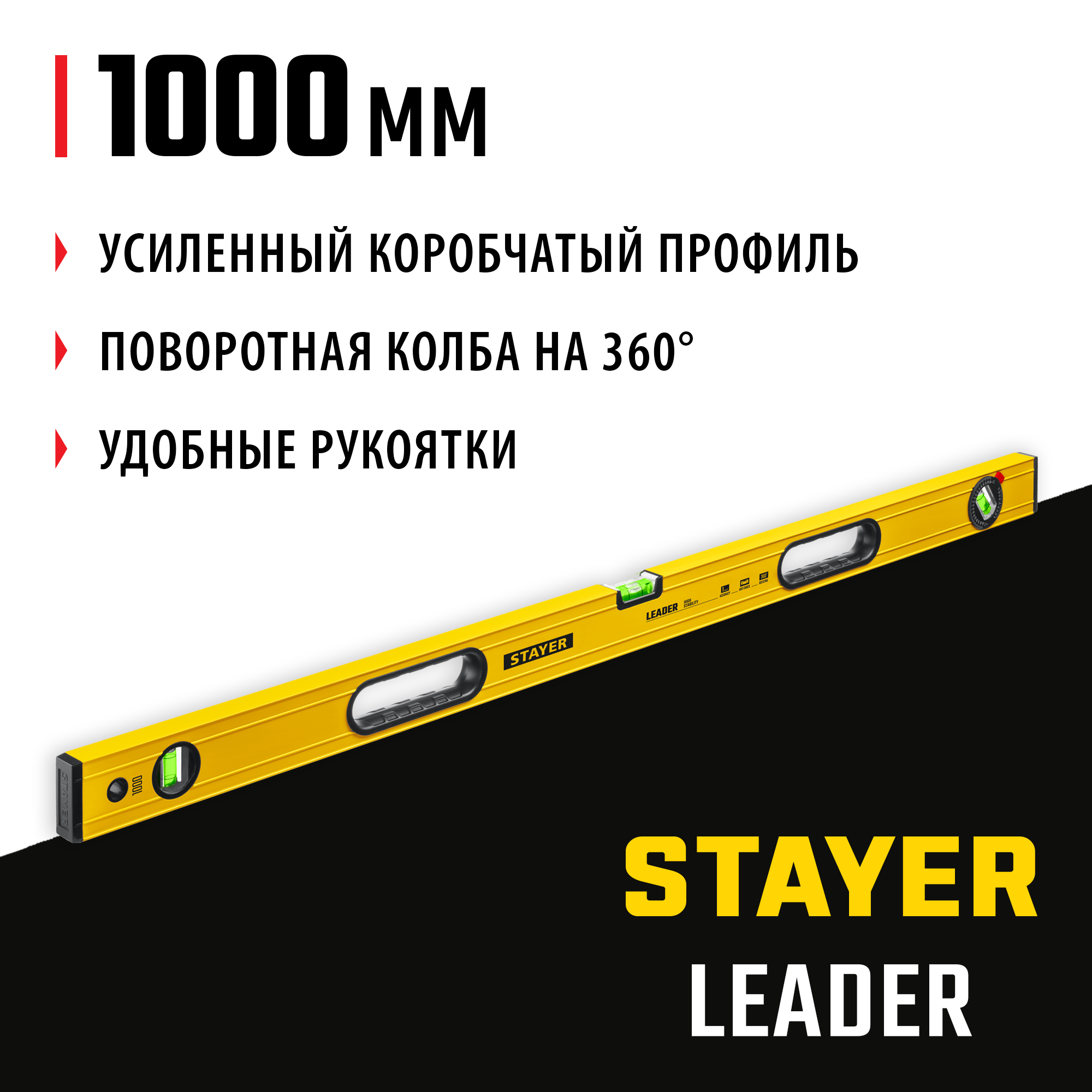 Доставка инструмента Уровень строительный фрезерованный STAYER 1000 мм, LEADER 3466-100_z01