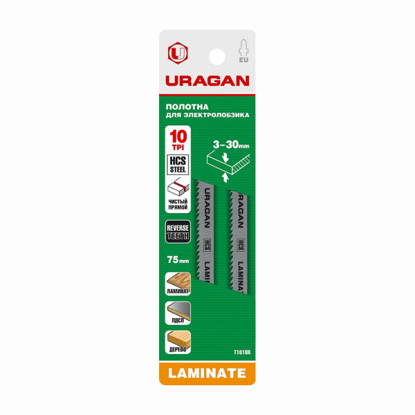 Как купить Полотно для эл/лобзика по ламинату EU-хвостовик, шаг 2.5 мм, 100/75 мм, 2 шт, HCS URAGAN?