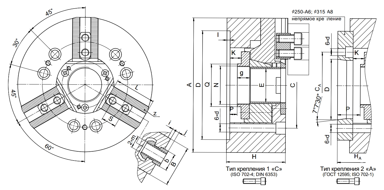 Патрон токарный 3-х кулачковый клиновой полый ППM-250.78М/A8 БЗСП