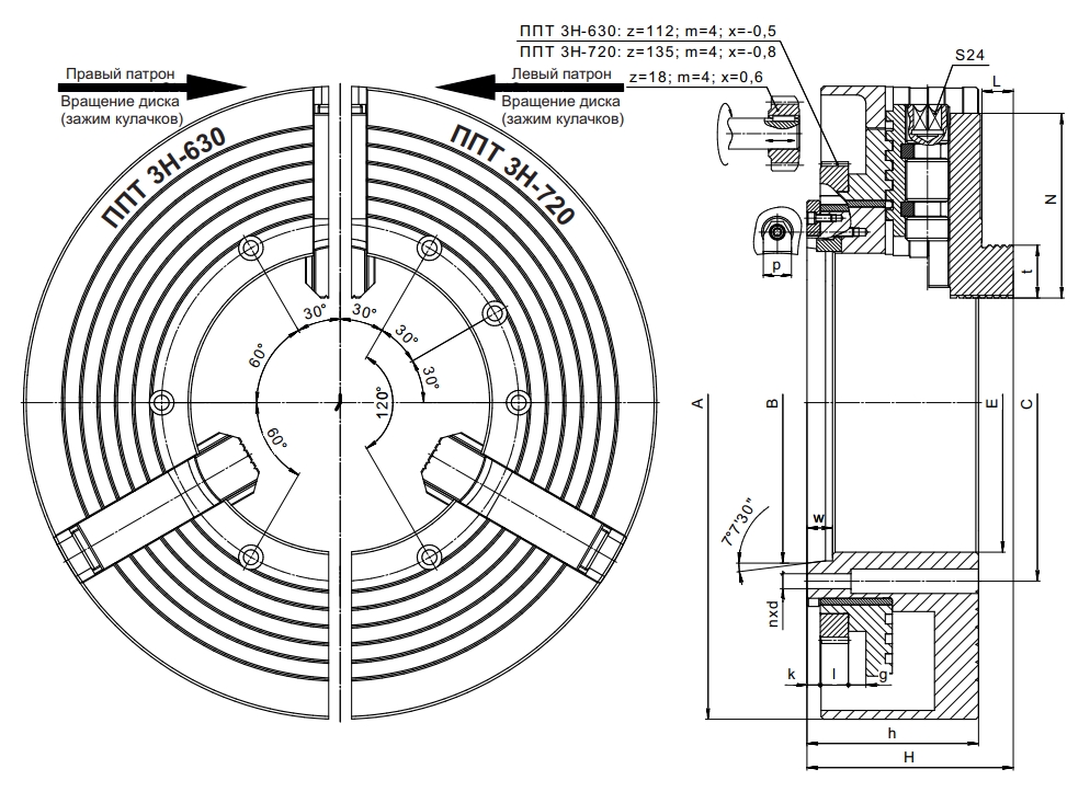 Модели ППТ 3Н-720.340 совместимы со станком серии СА984, также с предварительной доработкой гайки шпинделя под крепежные отверстия патрона.
