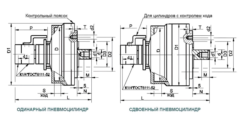 Для предотвращения падения давления в полостях цилиндра, при внезапном падении давления в сети, в пневмоцилиндр встроены пневматические клапаны, автоматически отключающие полости цилиндра от сети и обеспечивающие поддержание силы зажим детали в патроне до остановки вращения шпинделя станка.