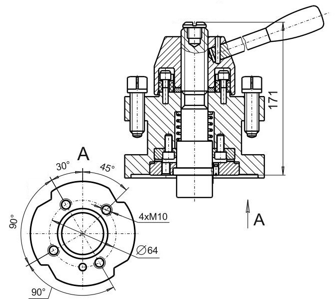 Четырехпозиционные резцедержатели моделей УГ0101.600.000.000 (рис. 1) и РДТ-4П (рис. 2) предназначены для установки на средних токарно-винторезных станках и являются взаимозаменяемыми. Модель РД-4П-01 (рис. 3) применяется в станках СА500 (600)Ф2 и СА500 (600)Ф3.