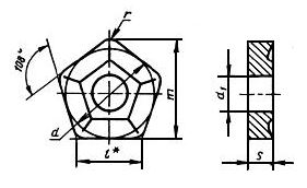 Пластины режущие сменные многогранные твердосплавные пятигранной формы с отверстием и стружколомающими канавками на одной стороне. Сменные многогранные твердосплавные пластины (СМТП) пятигранной формы часто применяют в качестве оснастки торцовых насадных фрез. Для закрепления твердосплавных пятигранных пластин с цилиндрическим отверстием используют рычажный метод, т.н. механическое крепление режущих пластин. Использование твердосплавных сменных пластин является существенным способом экономии денежных средств предприятиями металлообрабатывающей промышленности, так как инструмент, изготовленный из менее прочных и потому более дешевых сталей, со сменными твердосплавными пластинами, существенно дешевле монолитного твердосплавного. Изготавливаются пластины по ГОСТу 19065-80 из твердых сталей марок B35 (современный аналог сплава ВК8), H30 (современный аналог сплава Т5К10) и H10 (современный аналог сплава Т15К6) и обозначаются PNUM, PNMM.