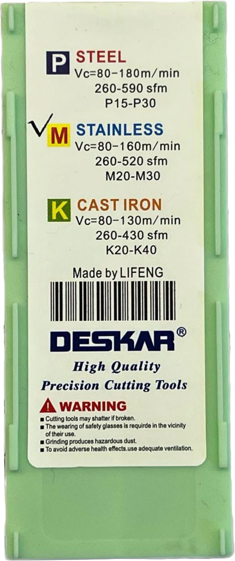 WCMT06T308 MF LF6118 пластина для сверла Deskar - сменная твердосплавная пластина WCMT по металлу предназначена для обработки материалов по ISO: PMK.