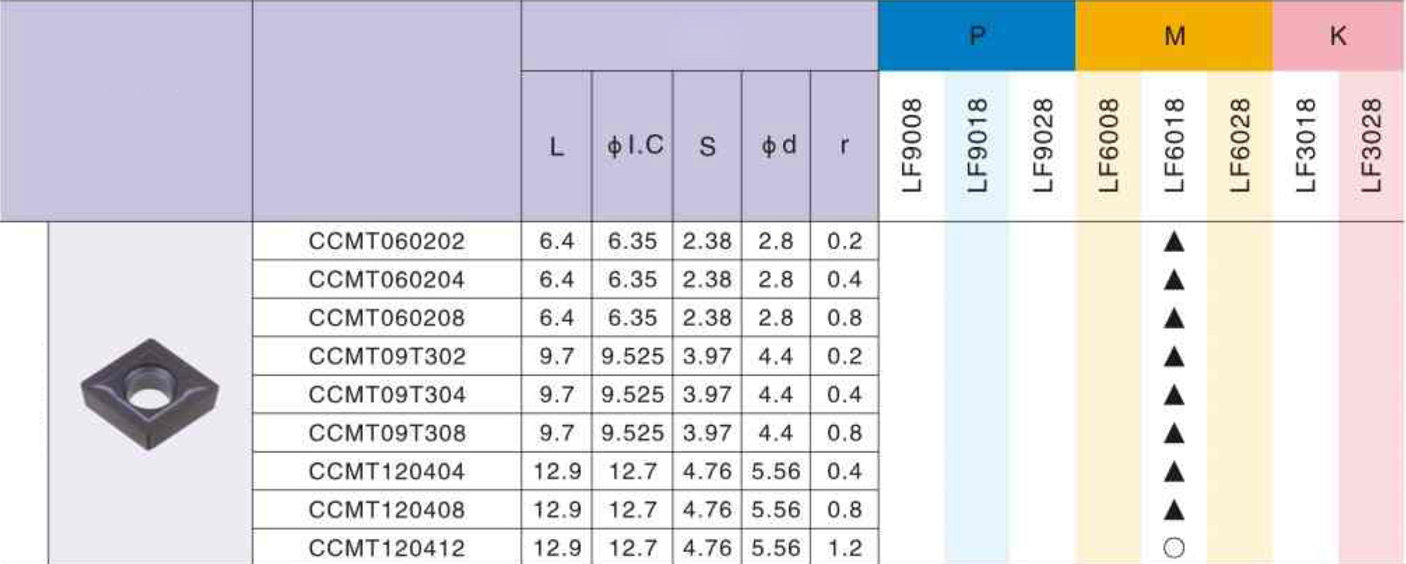 Сплав LF6018: подходит для обработки жаропрочных легированных сталей на низких скоростях резания. Сплав с превосходной ударной вязкостью и антиадгезионной износостойкостью разработан для аустенитной нержавеющей стали.