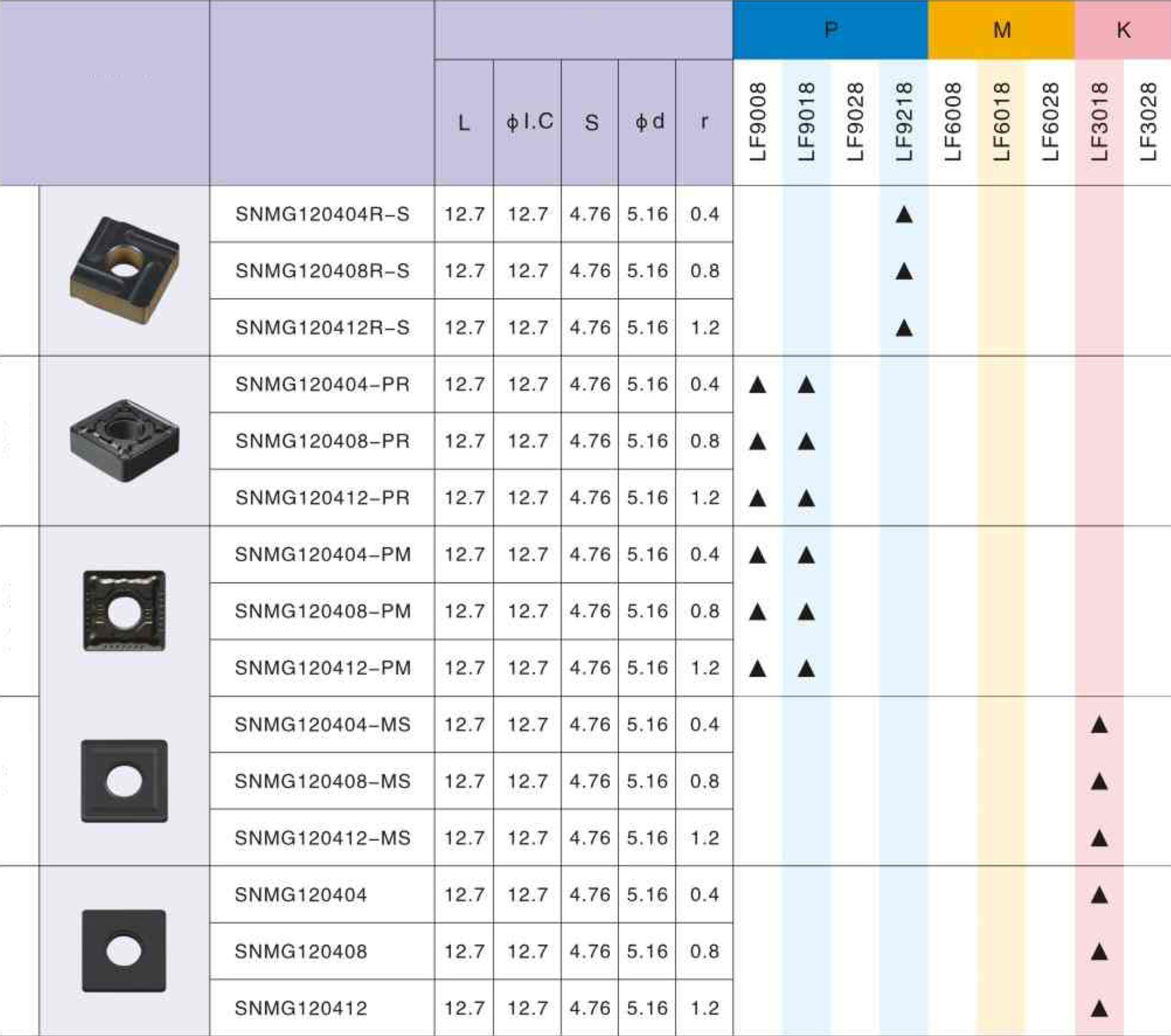 SNMG120408 LF3018 токарная пластина Deskar - сменная твердосплавная пластина SNMG по металлу предназначена для обработки материалов по ISO: K.
