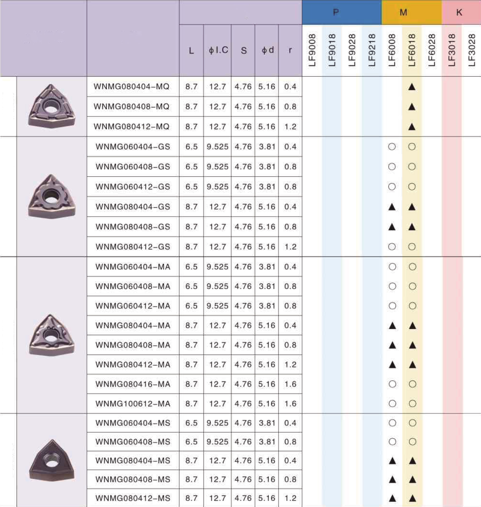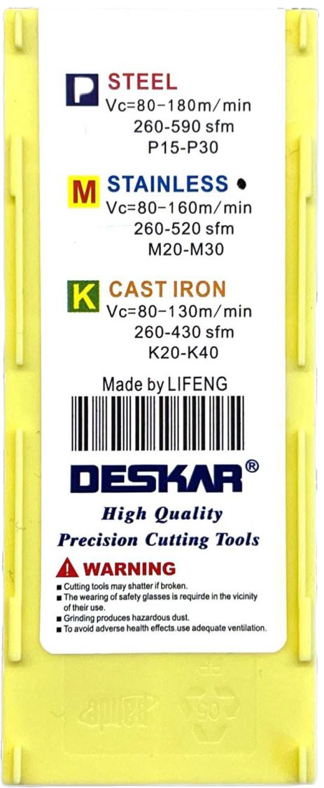 WNMG080404 MQ LF6018 токарная пластина Deskar - сменная твердосплавная пластина WNMG по металлу предназначена для обработки материалов по ISO: PMS.
