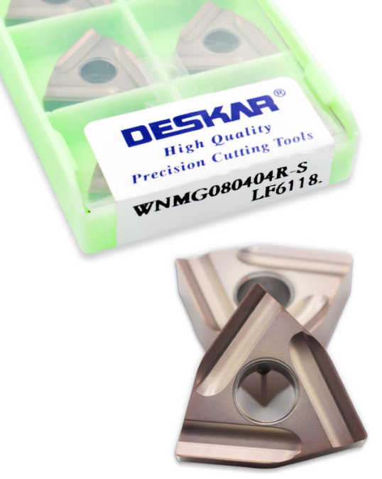 WNMG080404 R-S LF6118 токарная пластина Deskar - сменная твердосплавная пластина WNMG по металлу предназначена для обработки материалов по ISO: PMK.