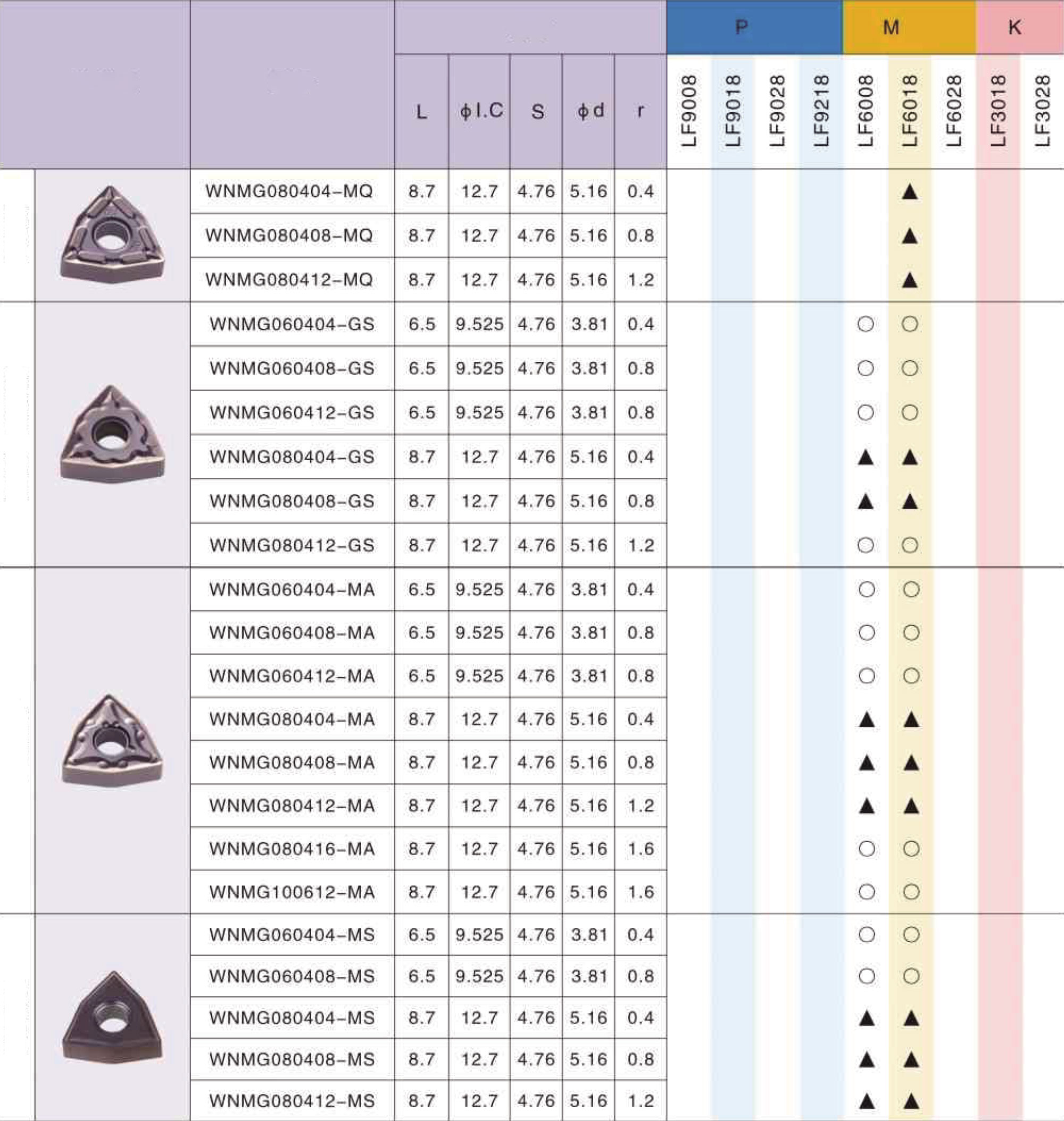 WNMG080408 HA LF6018 токарная пластина Deskar - сменная твердосплавная пластина WNMG по металлу предназначена для обработки материалов по ISO: PMS.
