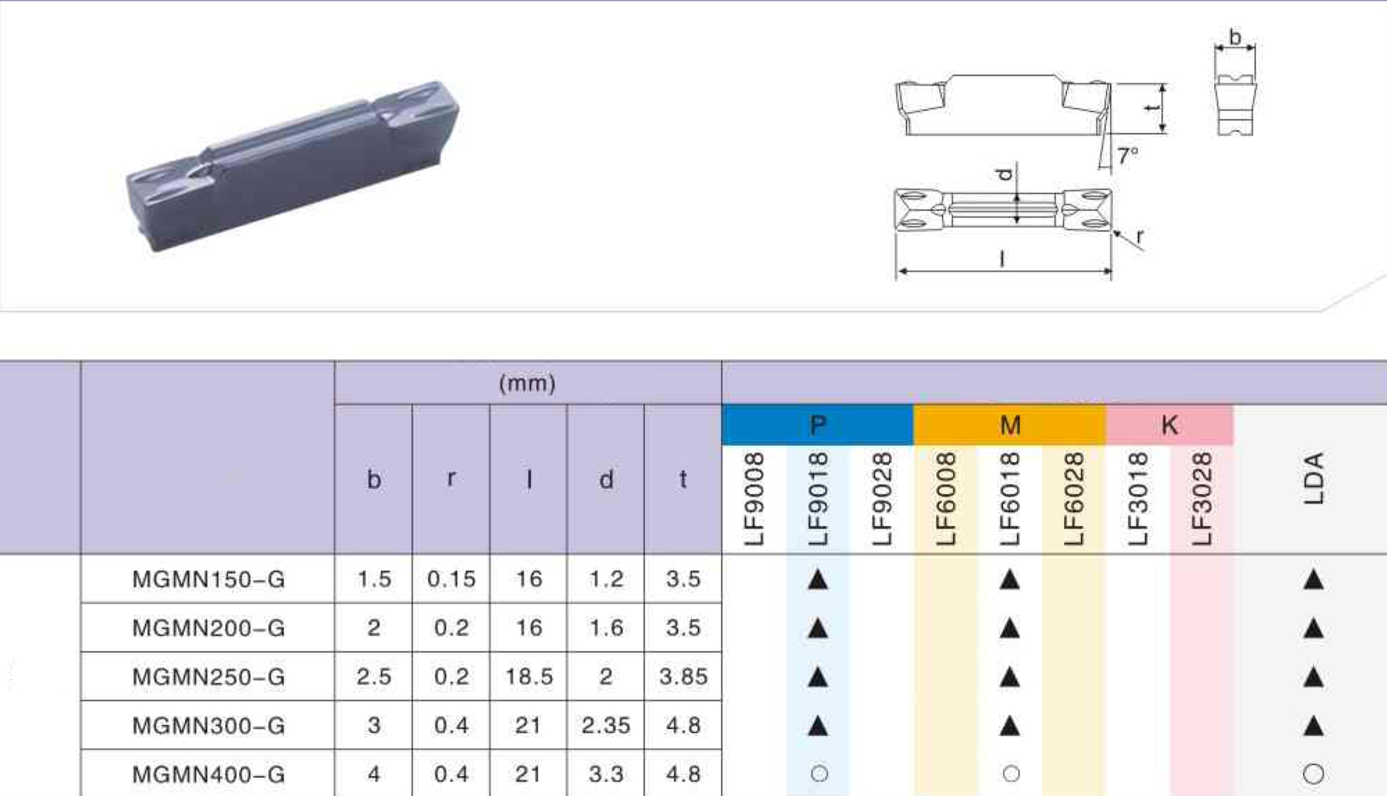MGMN200 G LF9018 пластина для отрезки и точения канавок Deskar - сменная твердосплавная пластина MGMN по металлу предназначена для обработки материалов по ISO: P.