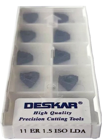 11ER 1.5 ISO LDA резьбовая пластина Deskar - металлорежущий инструмент предназначенный для нарезания резьбы по профилю ISO - метрическая резьба полный профиль 60°.