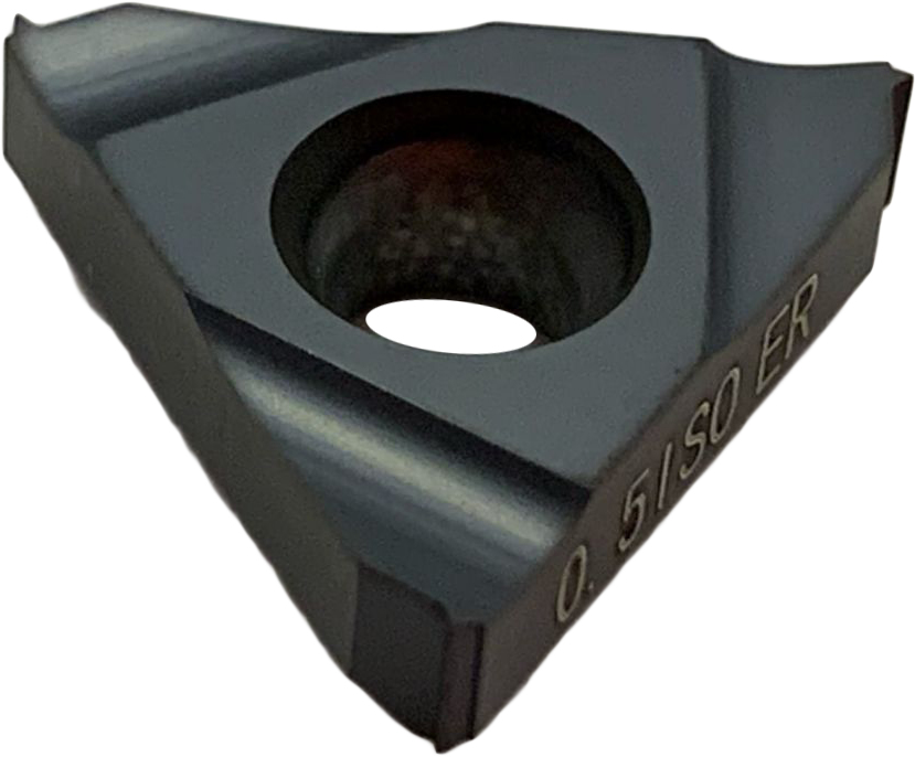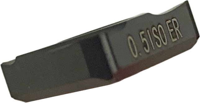 Сменная твердосплавная пластина предназначена для нарезания по профилю наружной резьбы с шагом 0.5 мм. Обрабатываемые материалы по ISO PM.