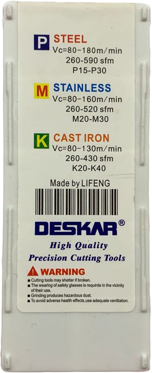 16ER 0.5 ISO LDA резьбовая пластина Deskar - металлорежущий инструмент предназначенный для нарезания резьбы по профилю ISO - метрическая резьба полный профиль 60°.