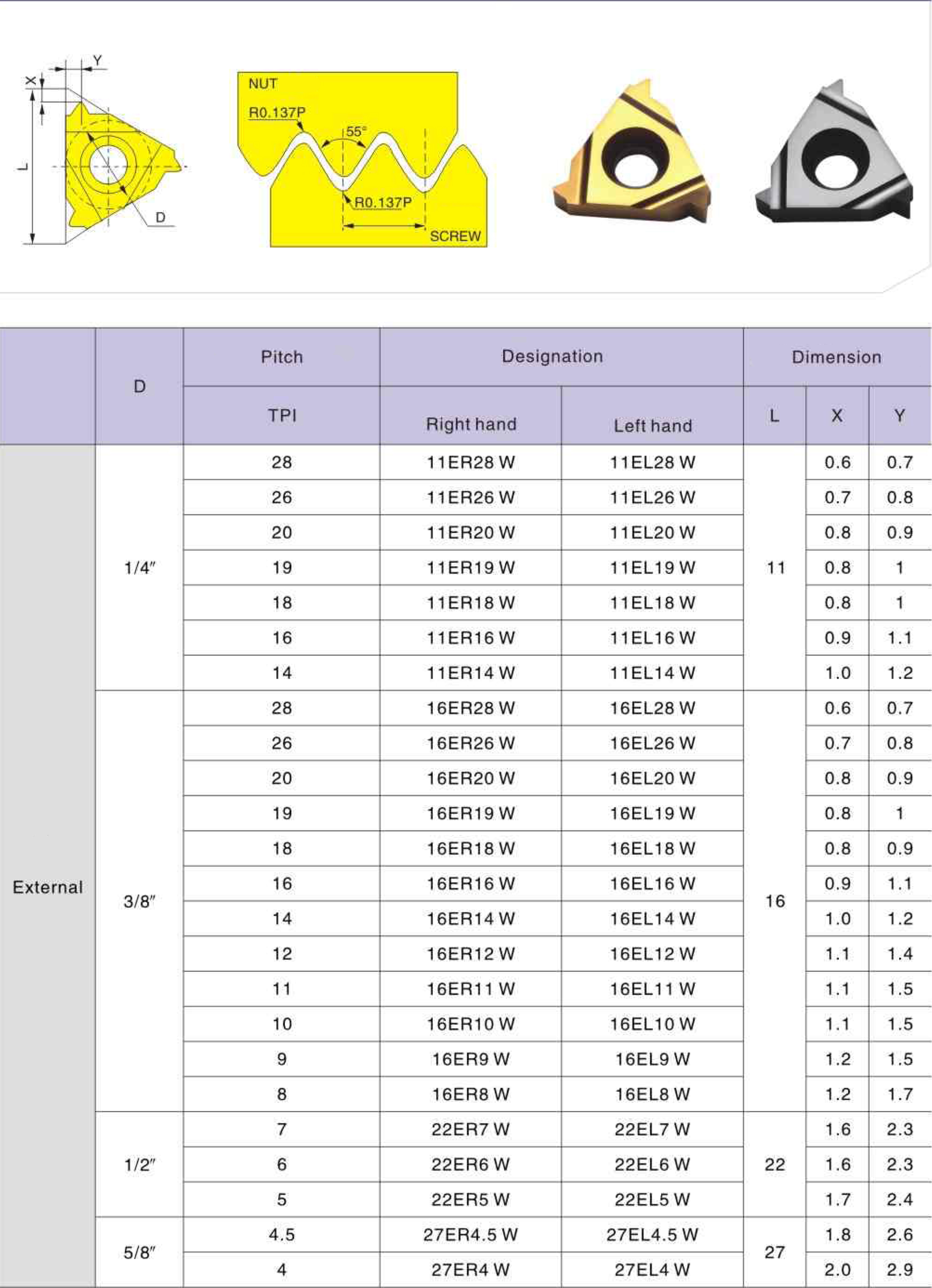 16ER 10 W LDA резьбовая пластина Deskar - металлорежущий инструмент предназначенный для нарезания резьбы по профилю W (BSW, BSF, BSP, BSB) - Трубная резьба Whitworth 55°.
