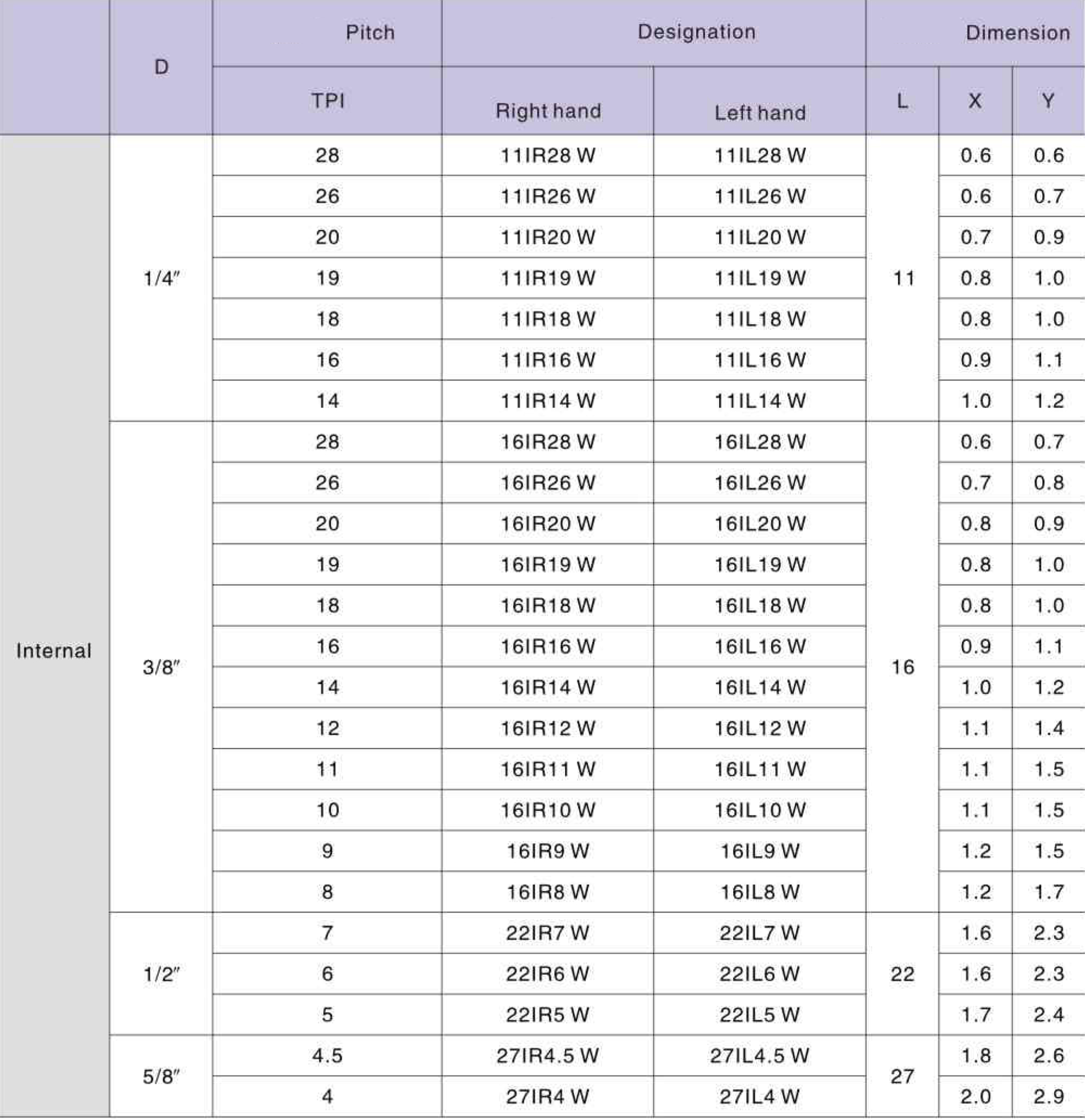 | 154354 | 11 | IR | W (BSW, BSF, BSP, BSB) - Трубная резьба Whitworth 55° | LDA | 239.00 ₽ |