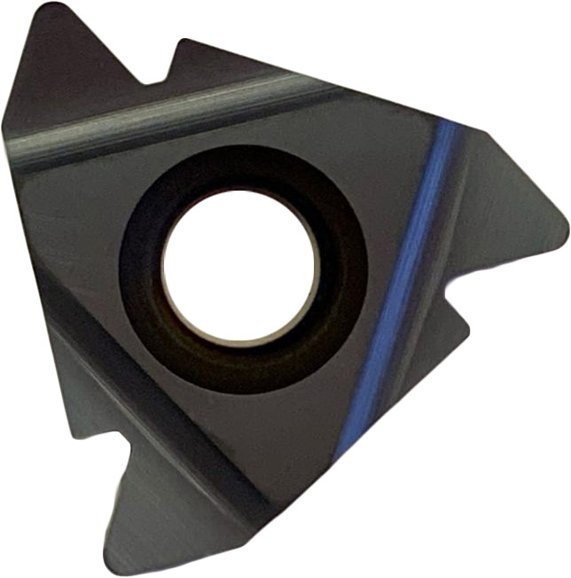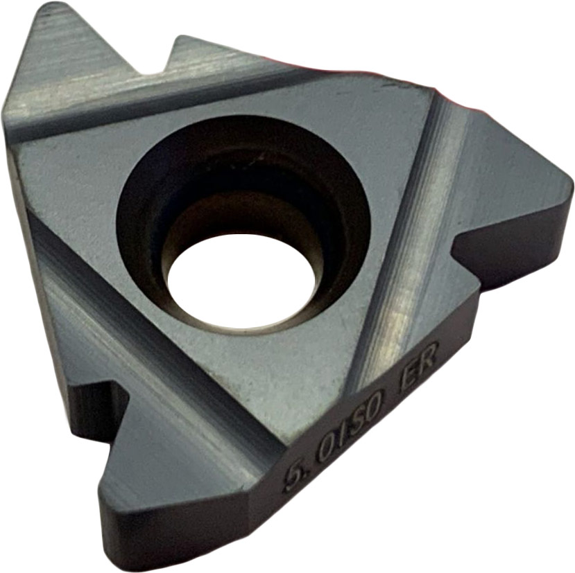Сменная твердосплавная пластина предназначена для нарезания по профилю наружной резьбы с шагом 5.0 мм. Обрабатываемые материалы по ISO PM.