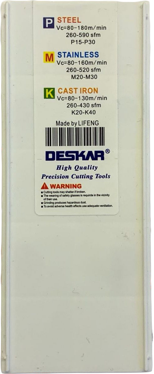 22ER 5.0 ISO LDA резьбовая пластина Deskar - металлорежущий инструмент предназначенный для нарезания резьбы по профилю ISO - метрическая резьба полный профиль 60°.