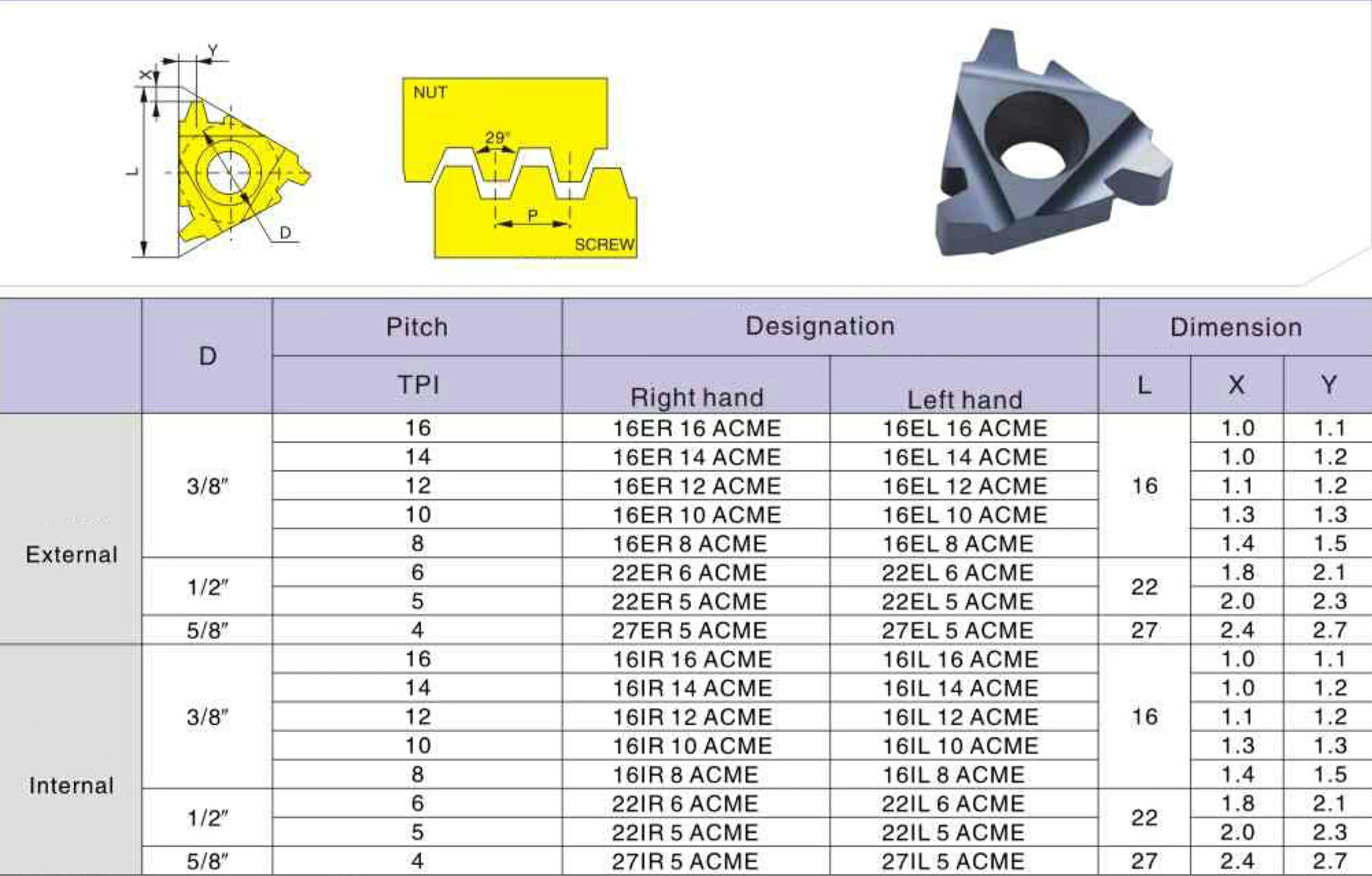 22ER 4 ACME LDA резьбовая пластина Deskar - металлорежущий инструмент предназначенный для нарезания резьбы по профилю ACME - Американская трапецеидальная резьба 29°.