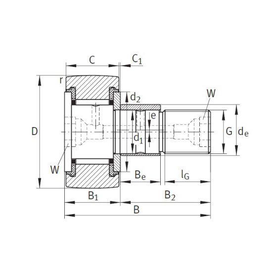 Опорный однорядный ролик KRE30-PP с эксцентриком и уплотнительным кольцом выдерживает высокие радиальные и осевые нагрузки. Наличие эксцентрика позволяет изготавливать сопрягаемую конструкцию с более грубыми допусками. Подходят для всех типов роликовых приводов, треков и конвейерных систем. Не имеет возможности консистентной смазки. Повторное смазывание производится с торцов цапфы. Рабочая температура от -30° до +80° C