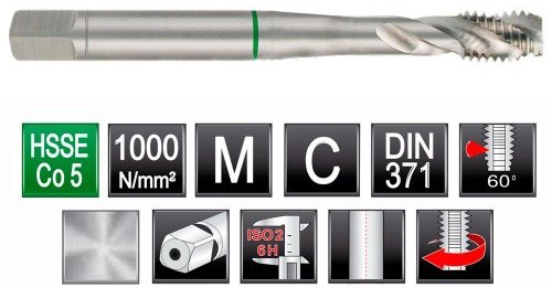 Метчики машинно-ручные и машинные с винтовыми стружечными канавками или спиральные метчики предназначены для нарезания метрической резьбы по ГОСТ24705-81. Винтовая стружечная канавка выполняется методом вышлифовывания. Благодаря винтовой канавке облегчается вывод стружки, при этом стружка не скапливается на режущей части, что уменьшает вероятность заклинивания и поломки метчика. Уменьшается нагрев и значительно возрастает стойкость метчика. Спиральный идеально подходит для нарезания резьбы в глухих отверстиях.