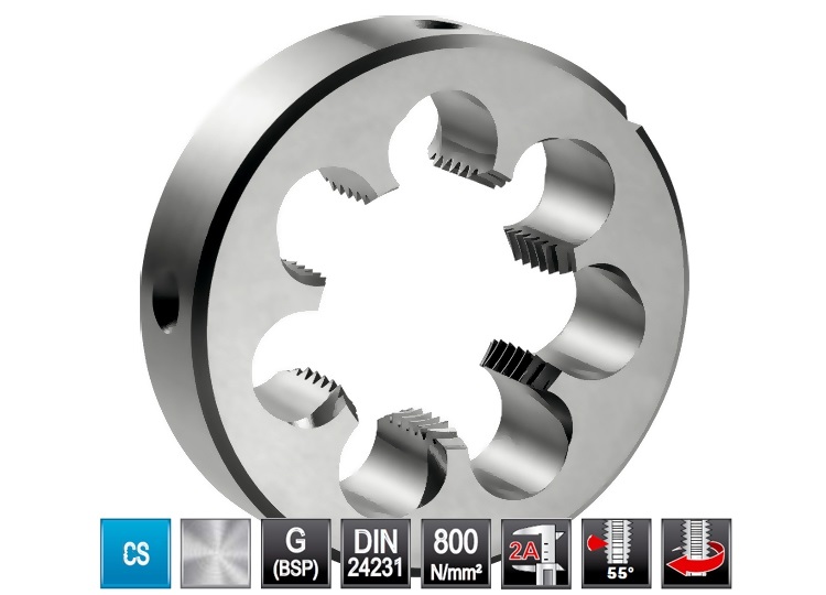 Плашка трубная G 3/8 BUCOVICE (Чехия) арт. 212380 — инструмент для ручного или машинного нарезания наружной резьбы на металлических деталях цилиндрической формы. Изделие выполнено из стали CS - английской марки, соответствующей отечественной стали 60 – качественной конструкционной..